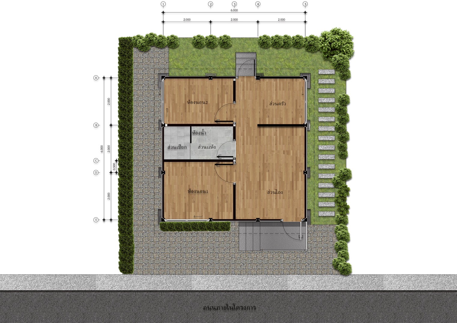 - ขนาดของบ้าน : 6.00 x 6.00 m (36 ตร.ม)