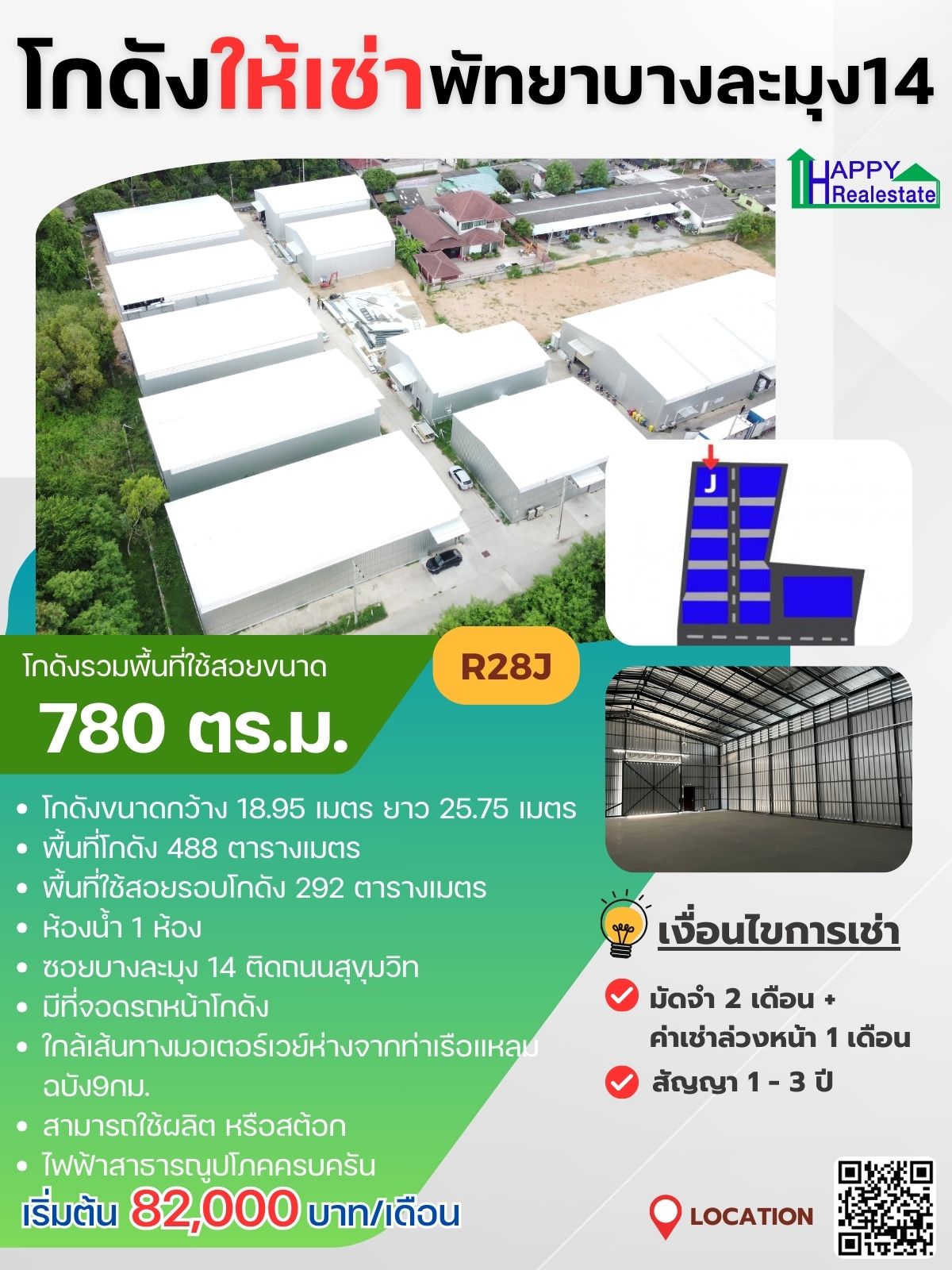 ชื่อสินค้า : R28J โกดังเช่าแหลมฉบัง-พัทยา รวมพื้นที่ใช้สอยทั้งหมด 780ตร.ม.